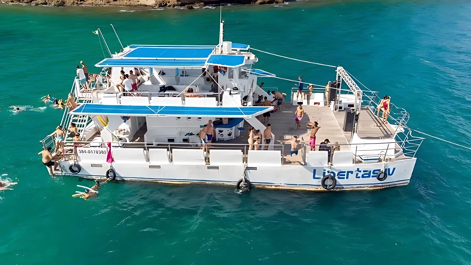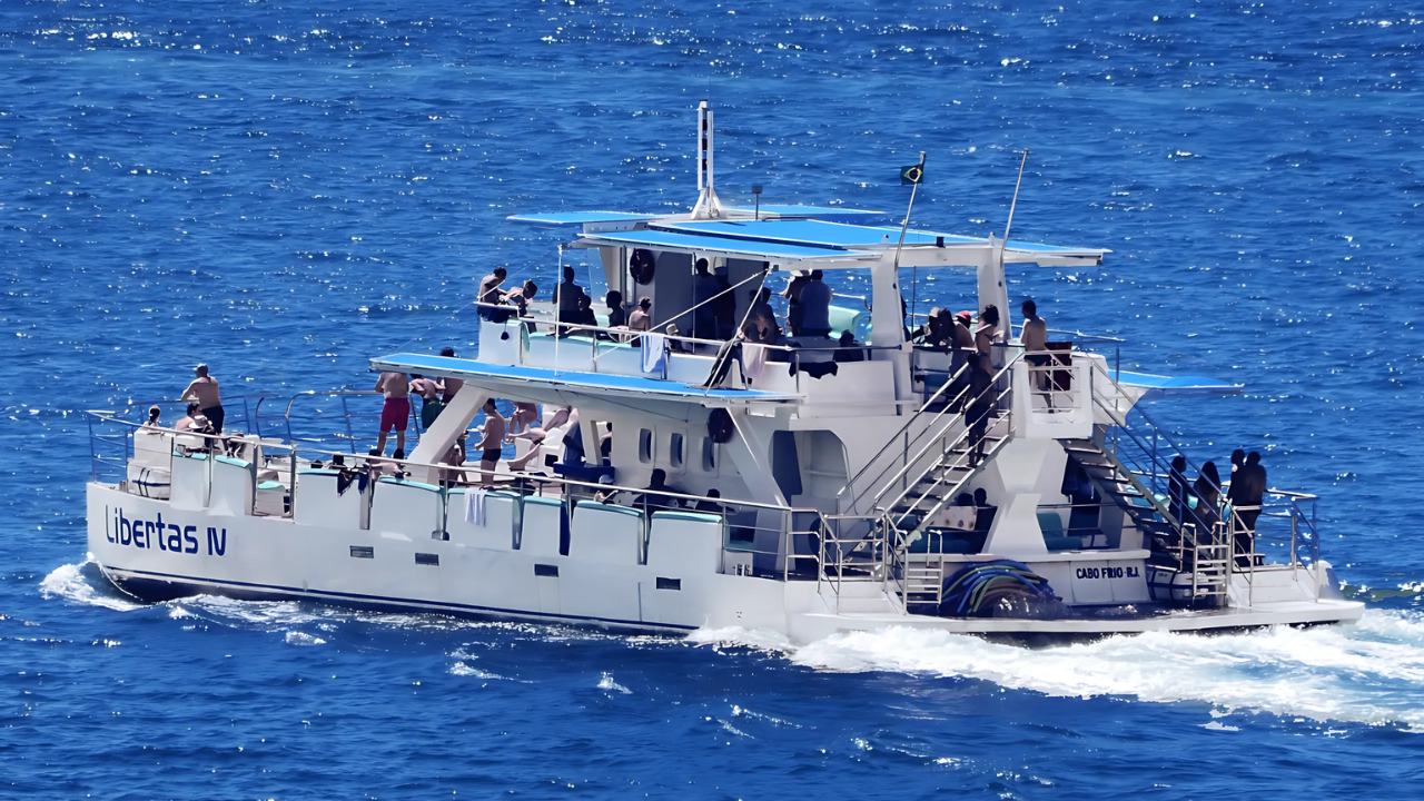 O catamarã é um barco que oferece muito mais estabilidade e conforto que a escuna, garantindo um passeio com bem menos balanço, com mais espaço, e estrutura moderna para toda a família. Perfeito para quem busca relaxar com segurança, vista panorâmica e atendimento de alto nível a bordo!